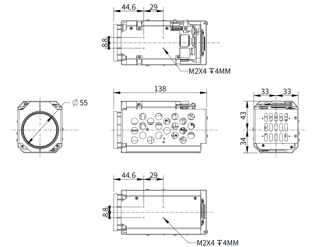 4pin Ethernet порт, 6pin сериялық және қуат порты, 5pin Audio Port. 30pin Mipi |